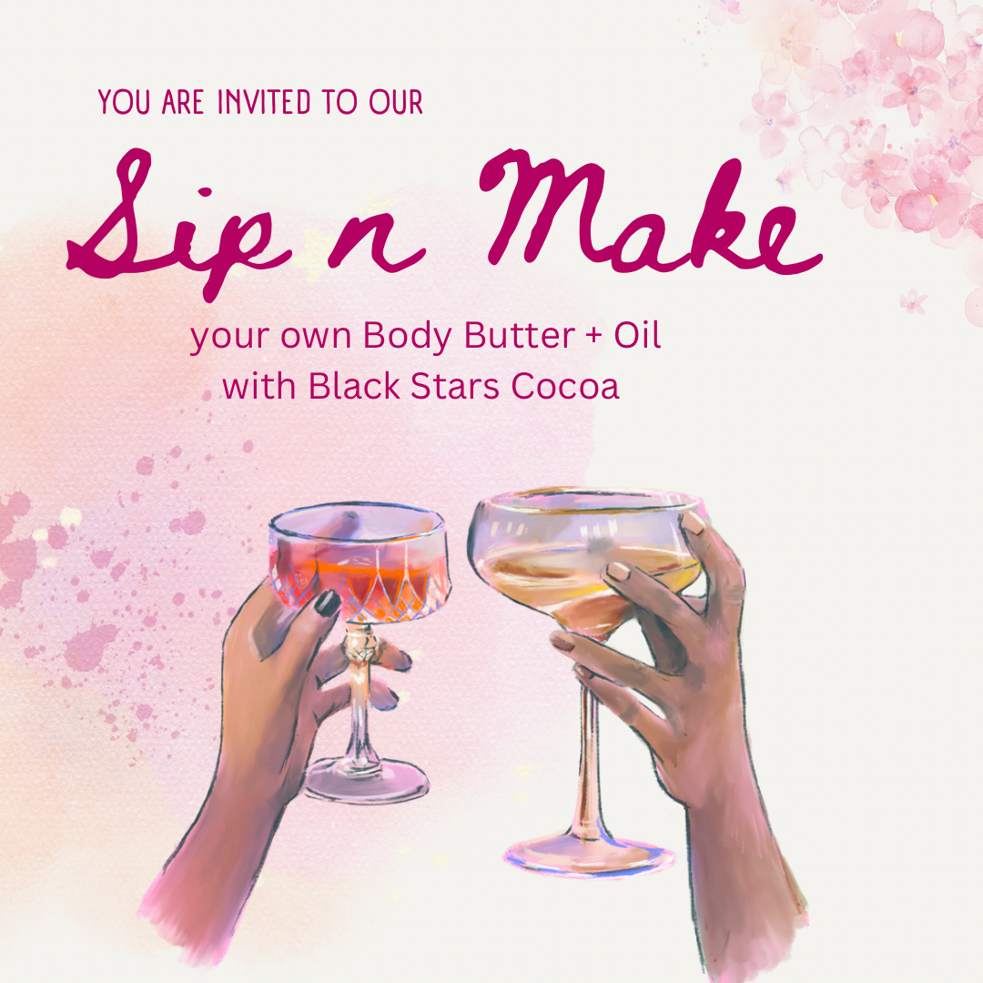 Join us for a fun and interactive Sip & Make workshop, where you'll learn to craft your own luxurious whipped body butter and nourishing body oil! This hands-on DIY experience is perfect for skincare enthusiasts, creative spirits, or anyone looking to indulge in self-care.